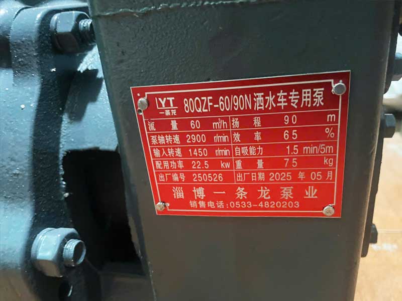 Máy bơm nước 80QZF-60/90N là dòng máy bơm chuyên dụng thế hệ mới, được thiết kế để lắp đặt trên các dòng xe ô tô xi téc phun nước rửa đường, tưới cây với dung tích bồn từ 7m3 đến 20m3. Với công suất 22,5kW, máy bơm cho lưu lượng nước lên đến 60m³/h, cột áp đạt tới 90m, rất phù hợp cho các ứng dụng đô thị, công trình môi trường và thậm chí là cứu hỏa khẩn cấp trong phạm vi gần.